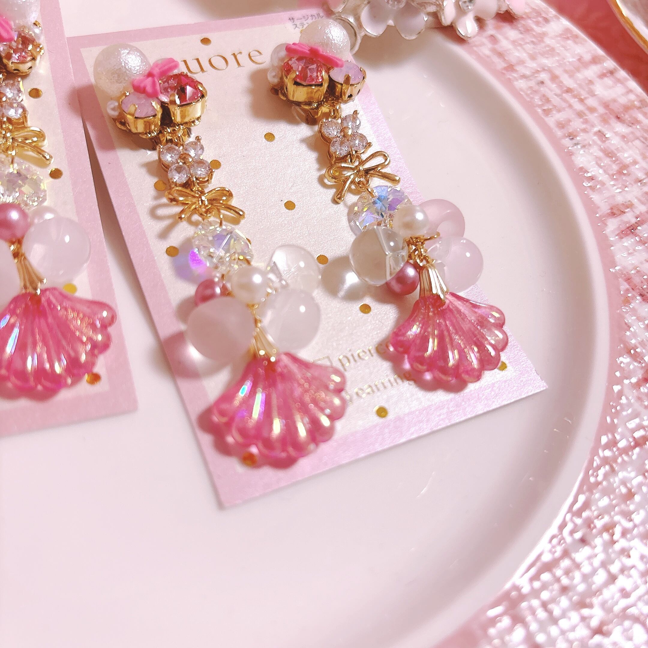 夏らしいシェルモチーフは、キラキラのラメが入った元気の出るお色味のピンク。