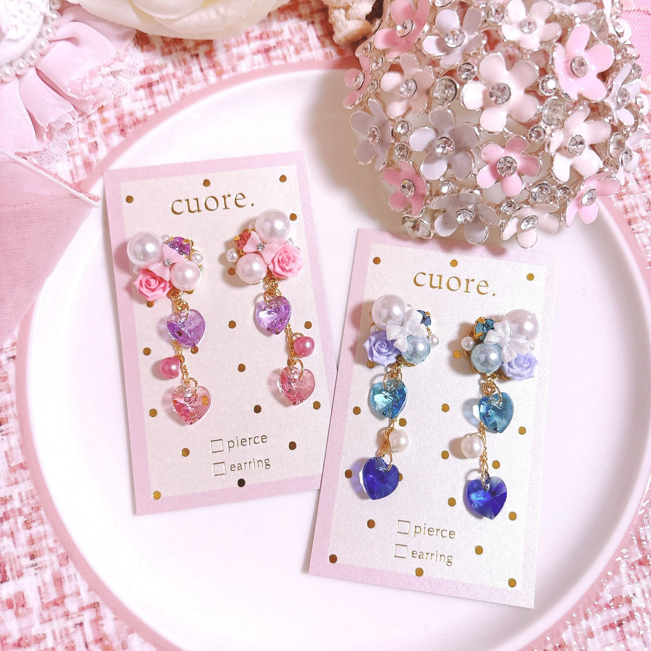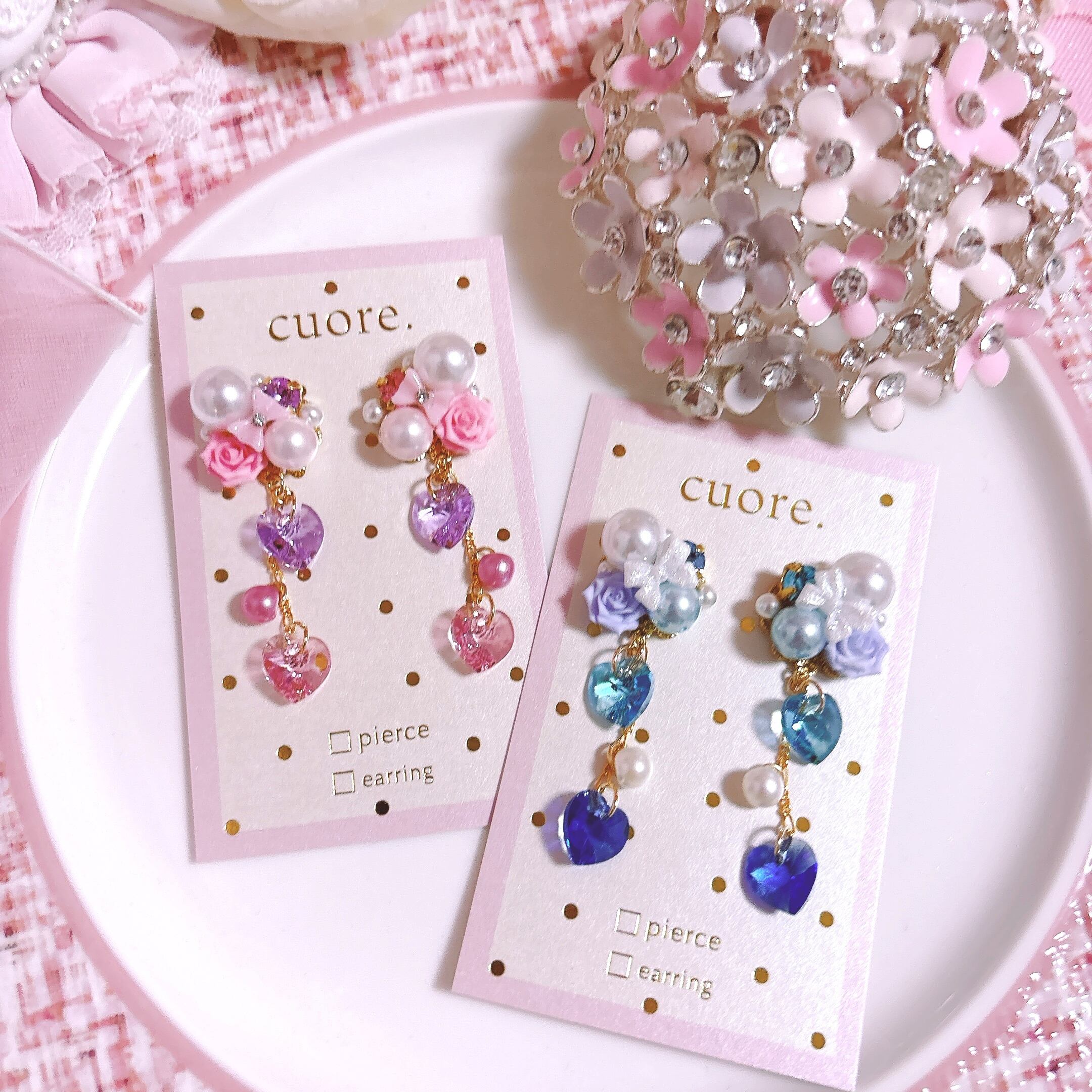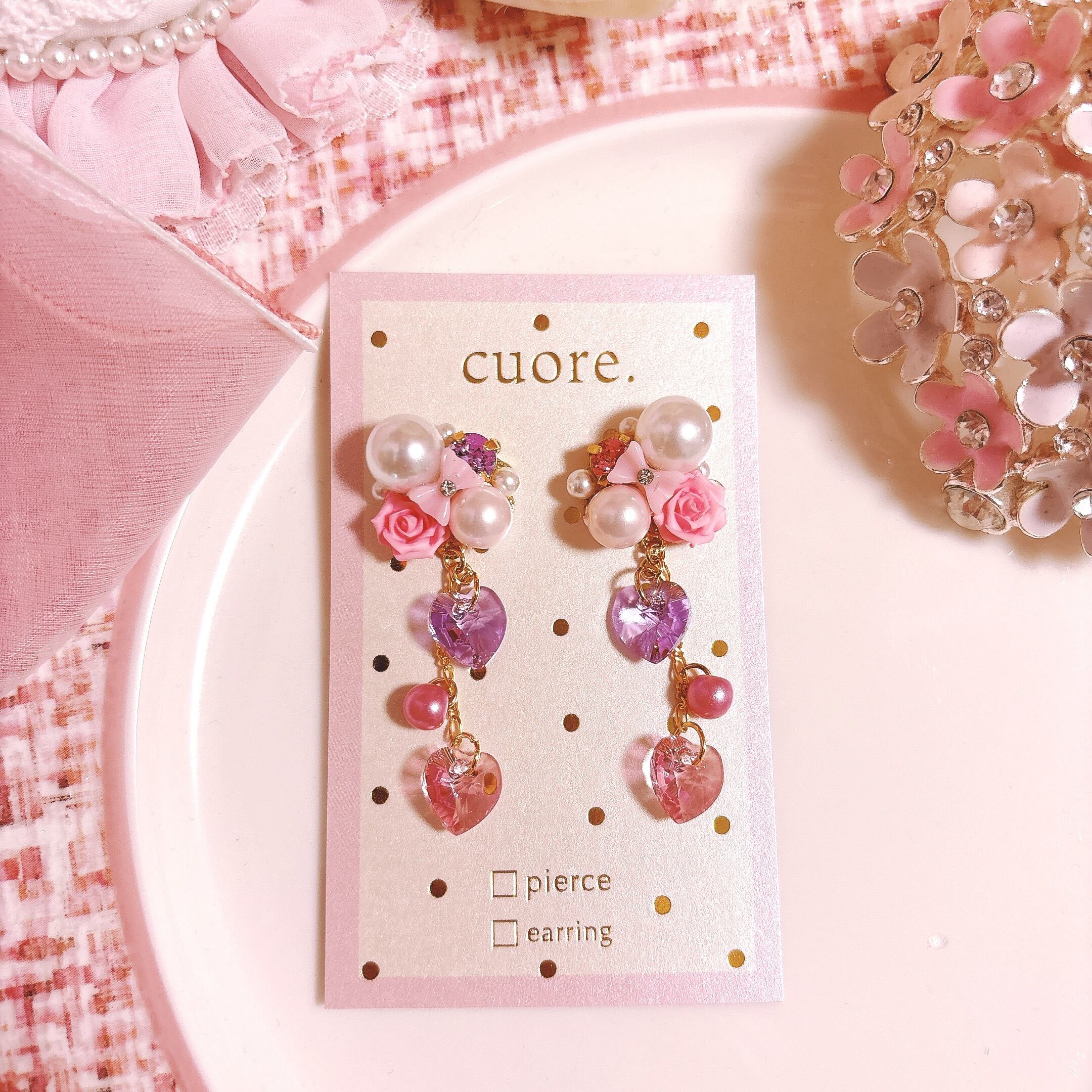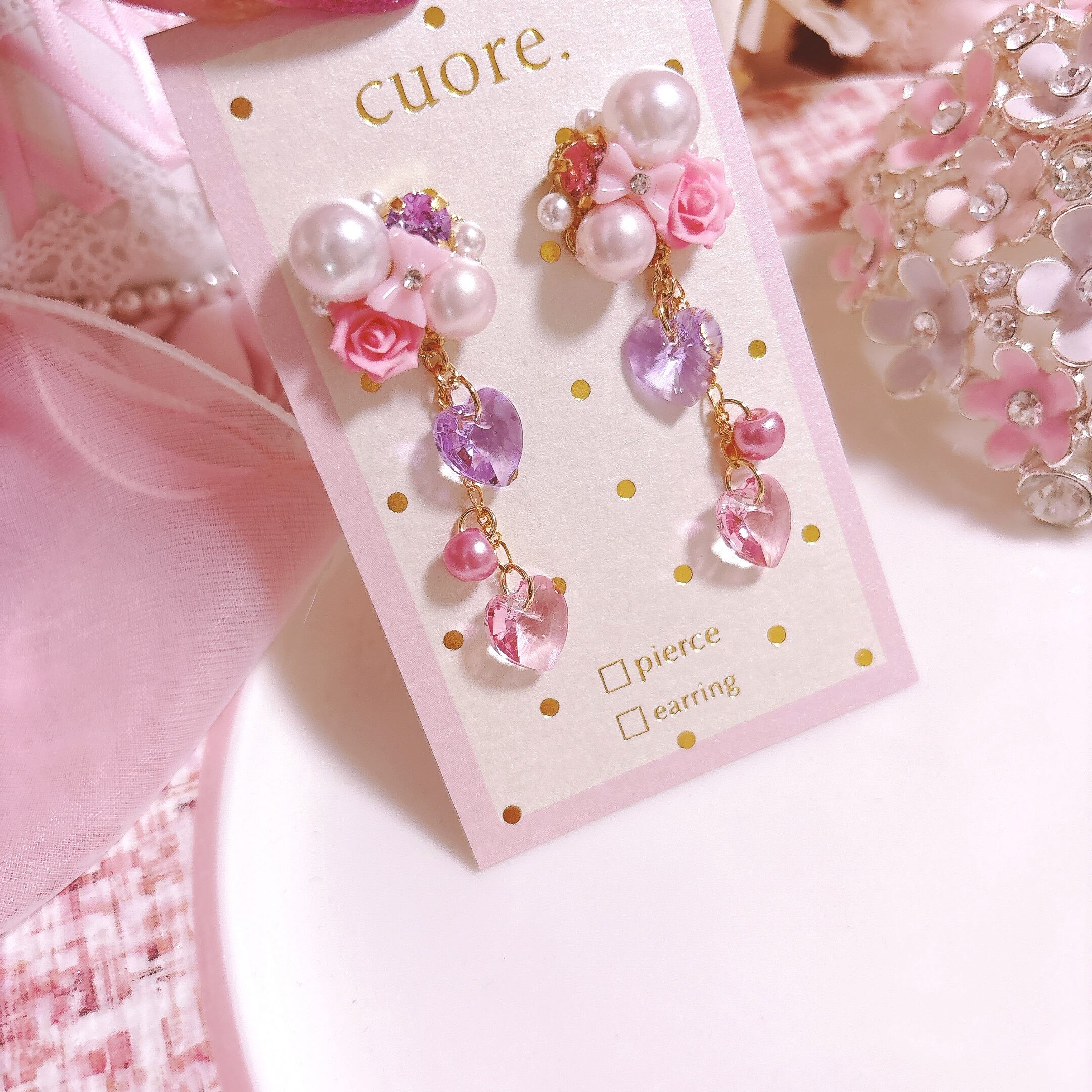 ハートがグラデーションカラーでダブルでついており、キラキラガーリー♡