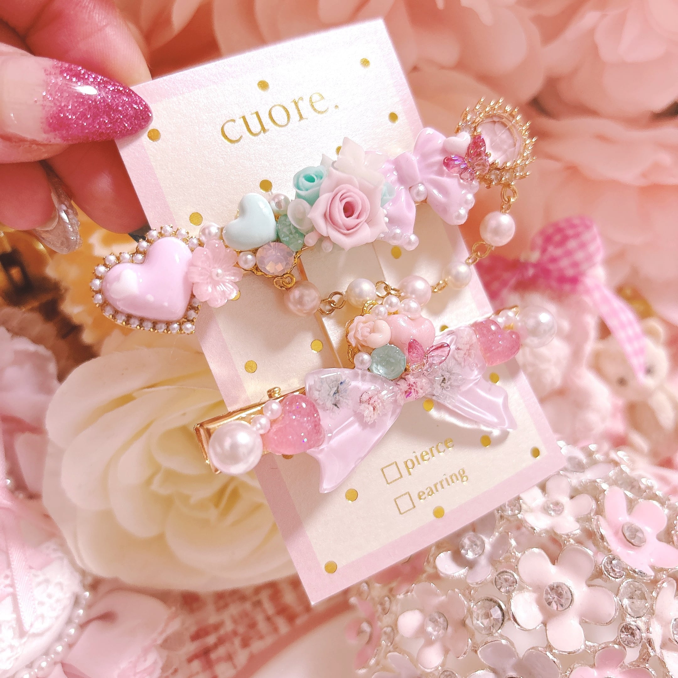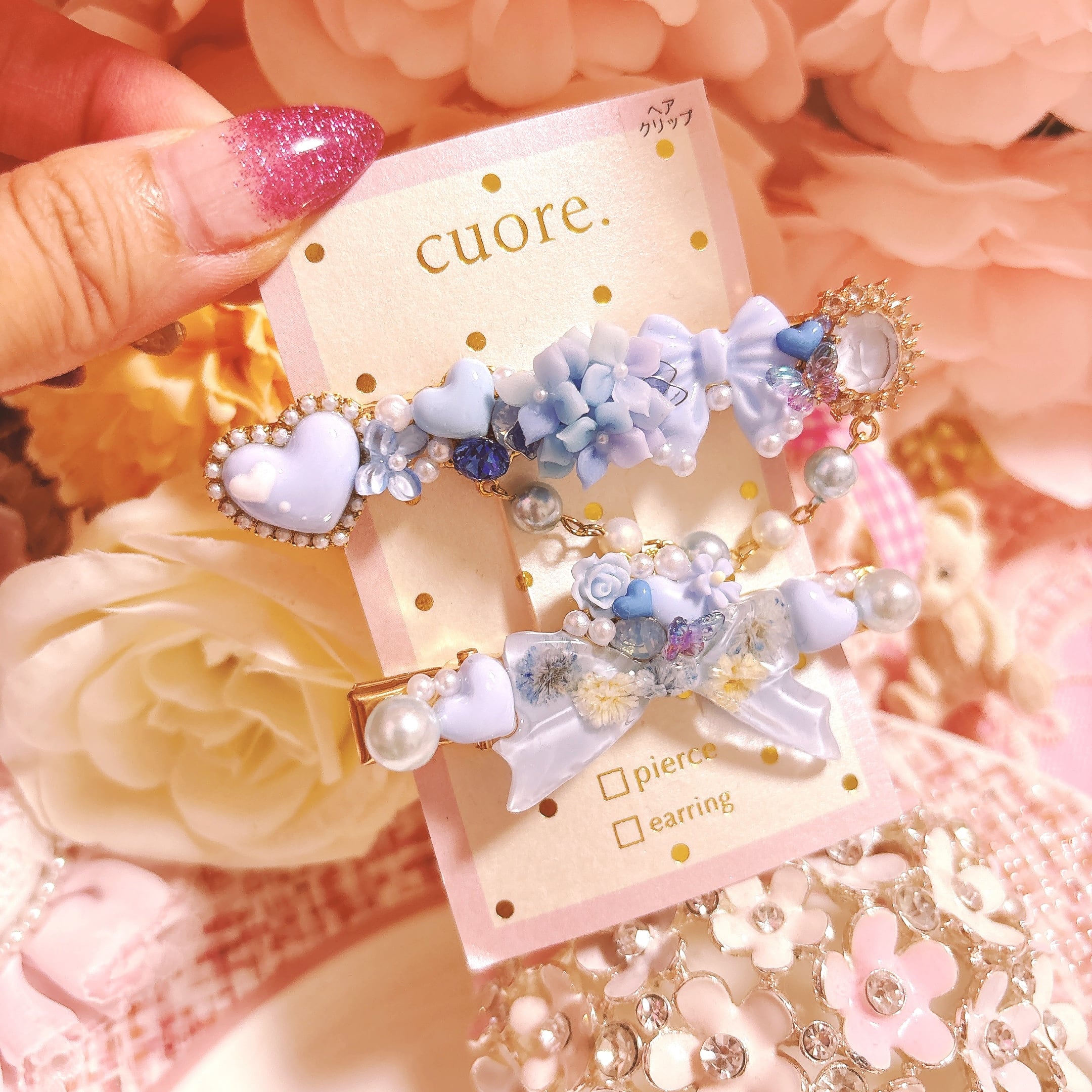 樹脂粘土で造られた上品で上質なフラワーパーツを使用したヘアクリップ。