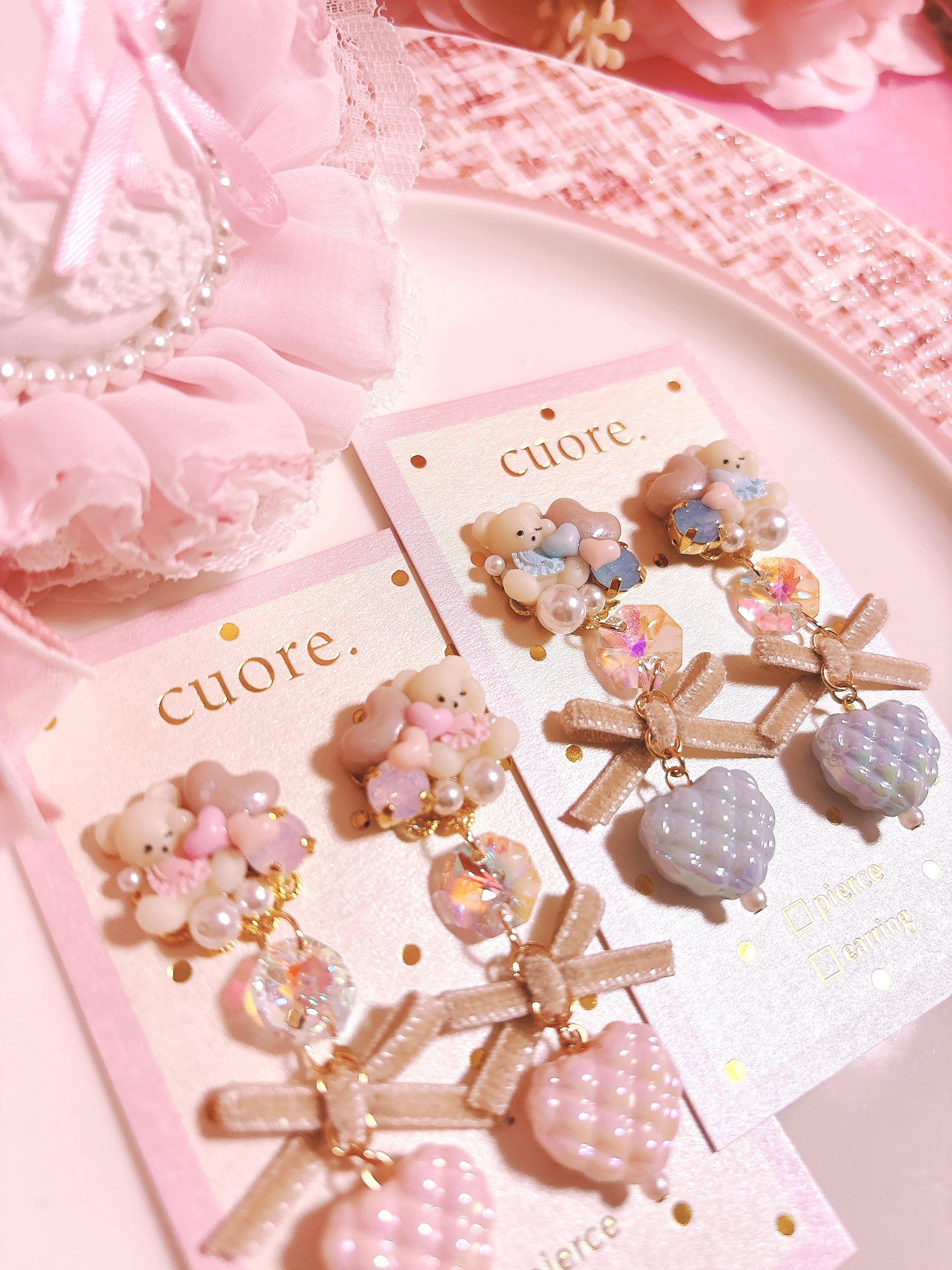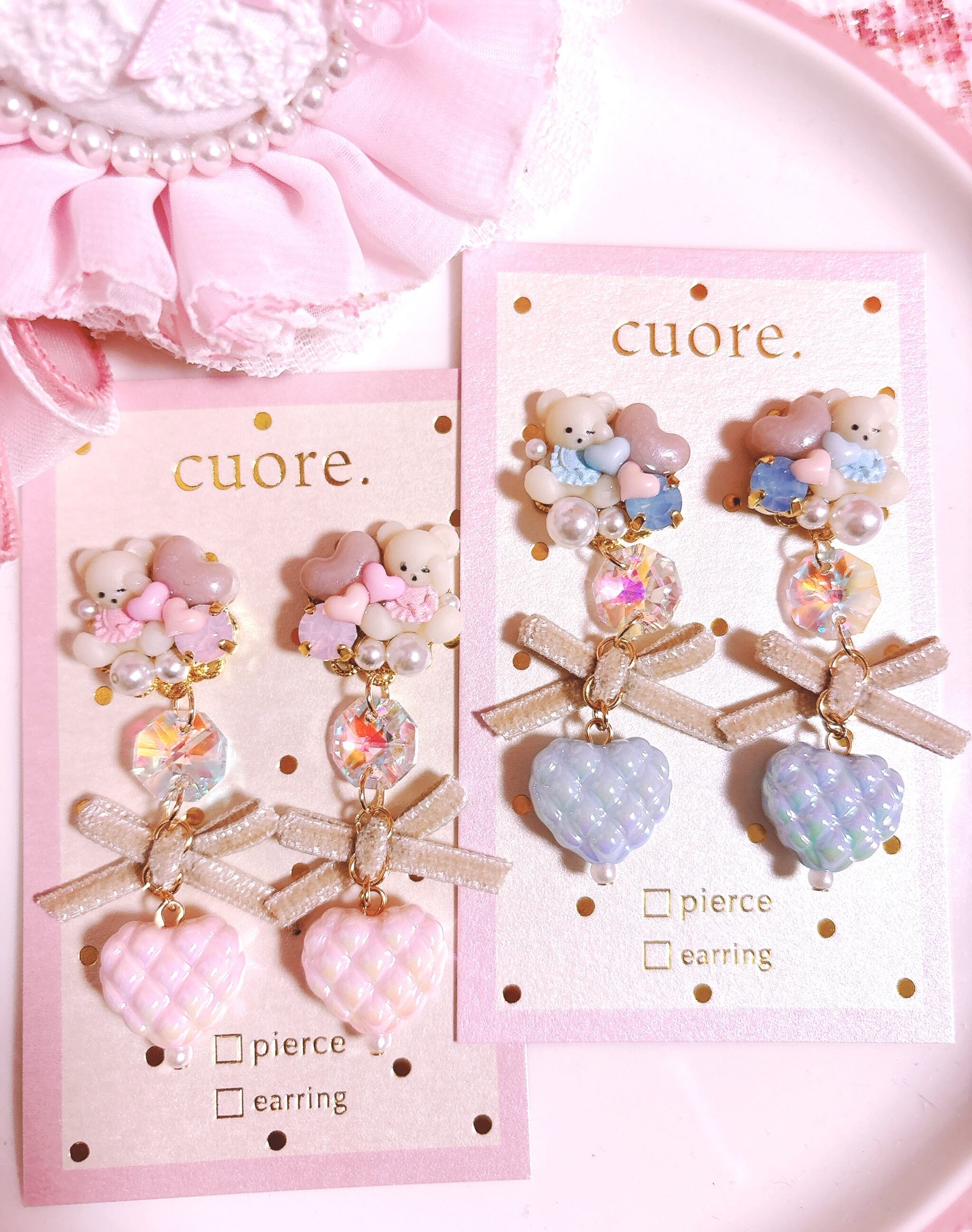 淡いお色味がお洋服と合わせやすく、つけると一気に可愛い耳元に♡