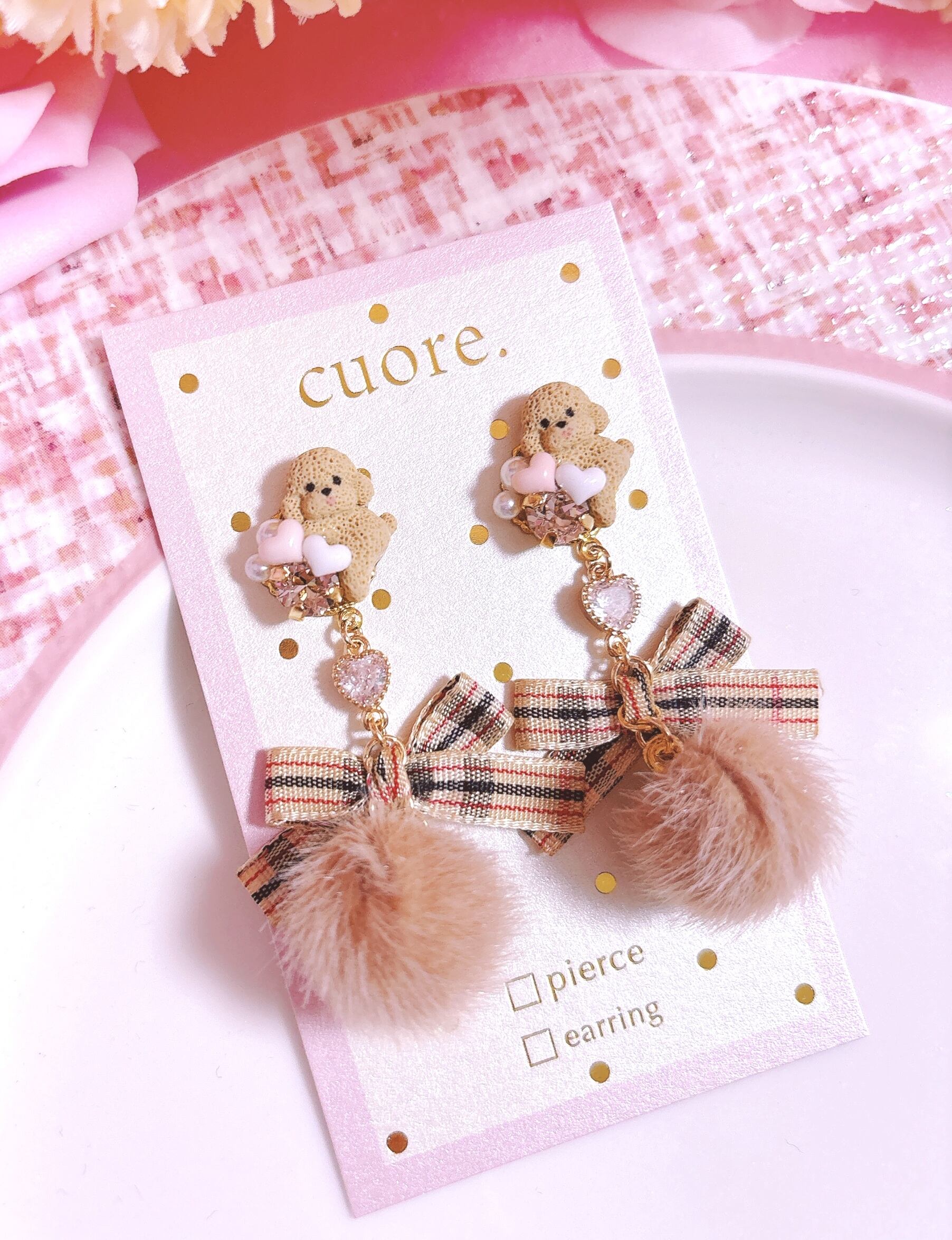 ちょこ乗りプードル♡ポンポンファー♡ピアス/イヤリング