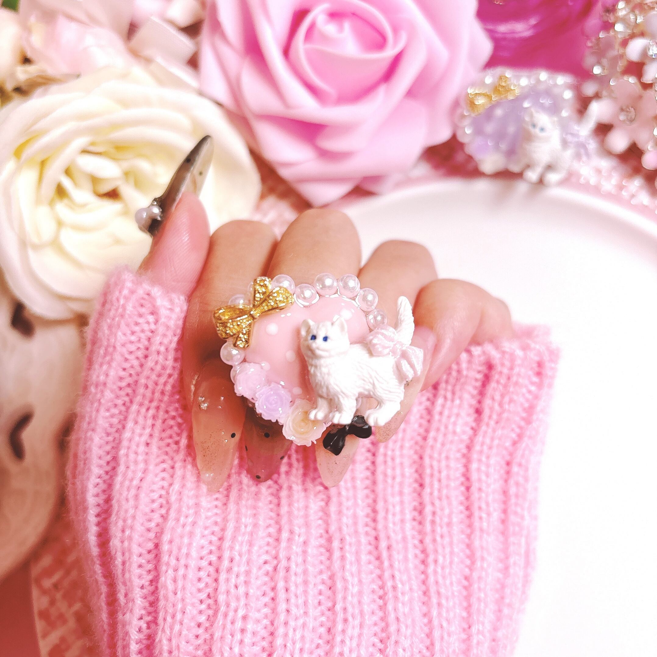 ねこちゃんパーツが取れにくいように、接着後、クリアジェルで埋め込み、コーティングを施しております。そのため、ジェルやコーティング剤が厚くなっている面がございますが、強度上げのためご了承くださいませ(* ᴗ͈ˬᴗ͈)”